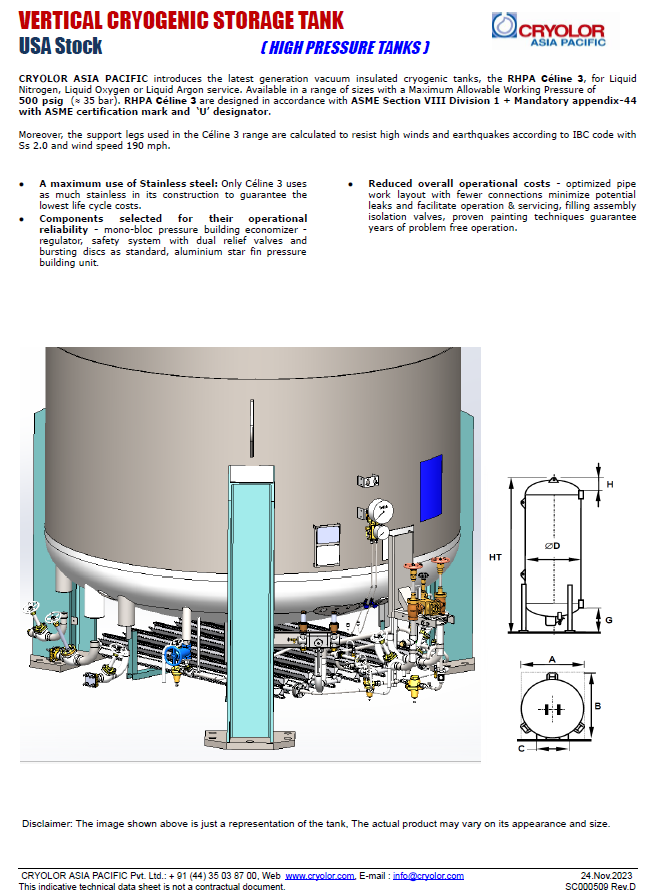 • Description: Vertical, vacuum-jacketed, liquid cryogenic storage vessel