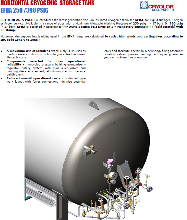 - Description: Horizontal, vacuum-jacketed, liquid cryogenic storage vessel