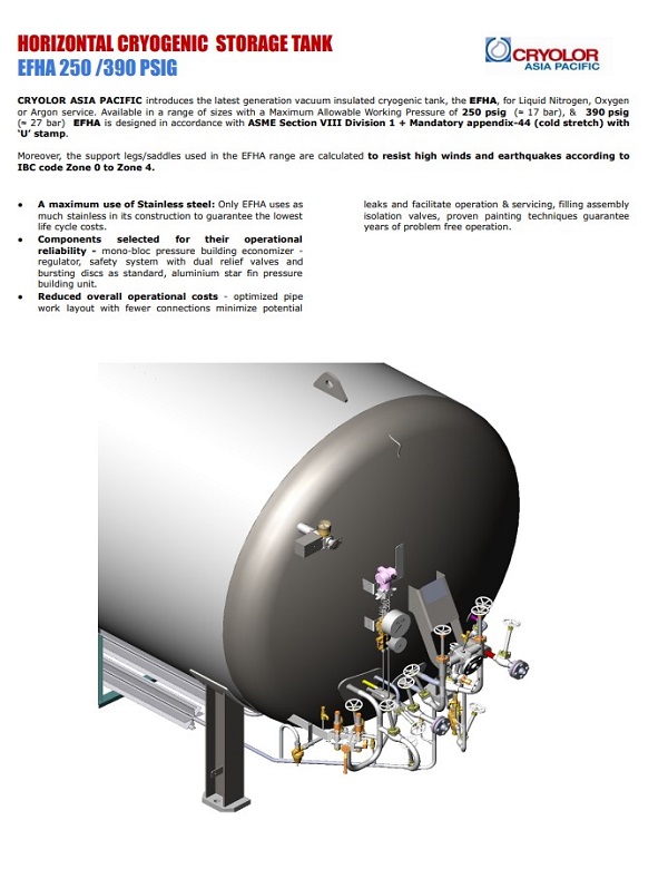 • Description: Horizontal, vacuum-jacketed, liquid cryogenic storage vessel