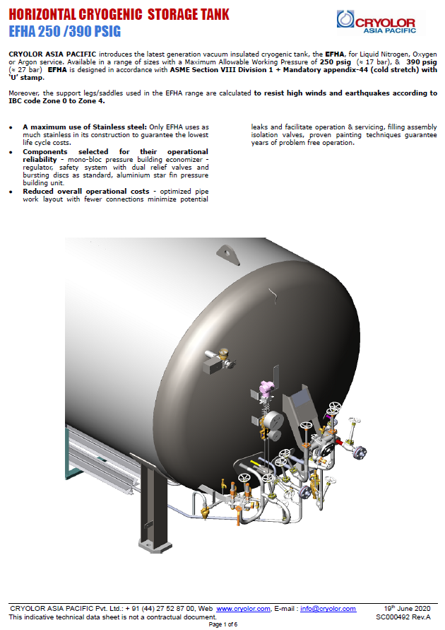 - Description: Horizontal, vacuum-jacketed, liquid cryogenic storage vessel